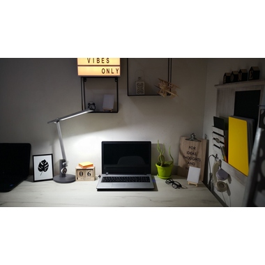 Die Beam Tischleuchte verbindet modernes Design mit innovativer Funktionalität. Ihr schlanker, minimalistisch geformter Leuchtenkopf verleiht ihr eine elegante Ästhetik, die sich in jedes moderne Umfeld einfügt. Der flexible Arm und der neigbare Leuchtenkopf sind ideal für eine präzise Ausleuchtung, sei es am Schreibtisch oder im Wohnzimmer. Besonders praktisch ist die digitale Zeitanzeige, die das Design zusätzlich aufwertet und praktische Informationen auf einen Blick liefert. Stufenlos dimmbar und mit herausragender Lichtqualität (Ra > 90), passt sie sich perfekt an Ihre Lichtbedürfnisse an. Dieses Produkt enthält eine Lichtquelle der Energieeffizienzklasse F und diese kann nicht ausgetauscht werden.