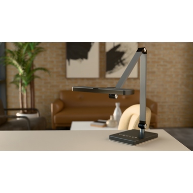 Nimbus ist die perfekte Mischung aus Eleganz und Flexibilität. Mit ihrem zweigelenkigen Arm und dem schmalen, rechteckigen Leuchtenkopf ermöglicht sie eine flexible Lichtführung, die sowohl funktional als auch stilvoll ist. Ihr elegantes Design mit klaren Linien und hochwertigen Materialien macht sie zu einem Blickfang auf jedem Schreibtisch. Die blendfreie Lichtverteilung und die stufenlose Dimmfunktion bieten zudem maximalen Komfort. Dieses Produkt enthält eine Lichtquelle der Energieeffizienzklasse E und diese kann nicht ausgetauscht werden.