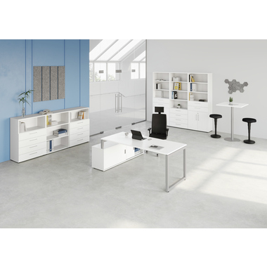 Hammerbacher Schreibtischkombination RSE19 Maße: Schreibtisch: 1.800 x 720-810 x 800 mm, Sideboard: 1.600 x 520 x 400 mm (B x H x T) Spanplatte, melaminharzbeschichtet weiß