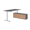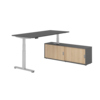 Maße: Schreibtisch: 1.800 x 630-1.270 x 800 mm, Sideboard: 1.600 x 520 x 400 mm (B x H x T) Dicke der Platte: 25 mm Form der Platte: Rechteck höhenverstellbar Art der Höhenverstellung: elektronisch inkl. Kufe Material der Platte: Spanplatte, melaminharzbeschichtet Material des Gestells: Stahl, pulverbeschichtet Farbe der Tischplatte: graphit Farbe des Korpus: graphit Farbe des Gestells: silber
