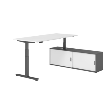 Hammerbacher Schreibtischkombination XDSM19 Maße: Schreibtisch: 1.800 x 630-1.270 x 800 mm, Sideboard: 1.600 x 520 x 400 mm (B x H x T) Spanplatte, melaminharzbeschichtet weiß