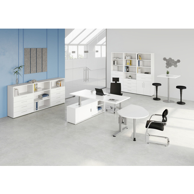 Hammerbacher Schreibtischkombination XDSM19 Maße: Schreibtisch: 1.800 x 630-1.270 x 800 mm, Sideboard: 1.600 x 520 x 400 mm (B x H x T) Spanplatte, melaminharzbeschichtet weiß