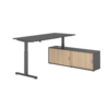 Schreibtisch XMST16 mit Tastschalter. Hubsäule taucht links oder rechts ein. Tisch kann mit beiliegender Kufe als separates Einzelmöbel verwendet werden. Sideboard mit 2 Schiebetüren. Einfache Montage.