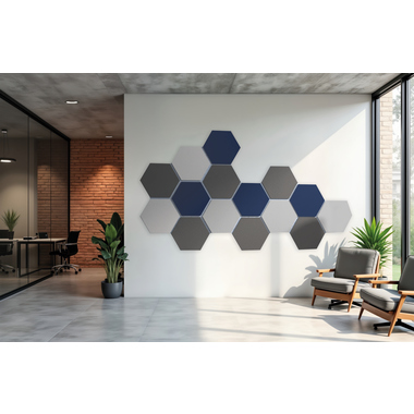 Die selbstklebenden Akustik-Wandpaneele im Hexagon-Format sorgen für eine verbesserte Raumakustik in jedem Raum. Dank der selbstklebenden Rückseite lassen sich die Paneele im Handumdrehen flexibel anbringen - perfekt für kreative Gestaltungsideen. Das zeitgemäße Wabendesign mit flammhemmender Ausstattung und hoher Materialdichte sorgt nicht nur für erstklassige Schalldämmung, sondern verleiht Wohn- und Office-Räumen auch eine elegante, ruhige Atmosphäre. Sie haften auf trockenen, glatten Oberflächen wie Holz, Glas, gestrichenen Wänden, Metall, Marmor und Fliesen. Sie können die selbstklebenden Platten schnell und einfach an der Wand oder an der Decke befestigen: Schutzfolie abziehen, Schallschutzplatte an der gewünschten Stelle anbringen.