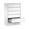 Schubladenschrank Acurado als Karteischrank. Mit hochwertiger Einbrennbeschichtung für hohe UV-Beständigkeit. Mit 2 verstellbaren Pendelblechen je Bahn. Hochwertige Etikettenrahmen aus Kunststoff, selbstklebend, inkl. weißem Beschriftungsschild. Achtung: Anlieferungsmöglichkeit durch Sattelschlepper muss gegeben sein.