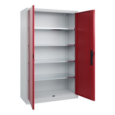Werkzeugschrank Acurado, Korpus aus stabiler Stahlkonstruktion mit hochwertiger Einbrennbeschichtung für hohe UV-Beständigkeit. Mit Bodengleitern als praktischem Schrank- und Fußbodenschutz. Hohe Flexibilität der Inneneinrichtung durch Höhenverstellbarkeit im Raster. Türen mit geschlossenen Seitenprofilen und verdeckten Schließstangen für höchste Stabilität und Einbruchsicherheit, mit Softanschlag. Türaufhängung oben und unten in Drehbolzen. Türen zueinander schlagend für gemeinsamen Verschluss. 3-Riegeliges Ergo-Lock Griffschloss für optimale Bedienungssicherheit und Verschleißfestigkeit, mit patentiertem Mechanismus: Zum Schließen einfach zudrücken. Achtung: Anlieferungsmöglichkeit durch Sattelschlepper muss gegeben sein.