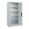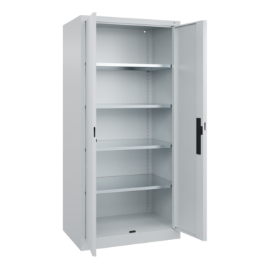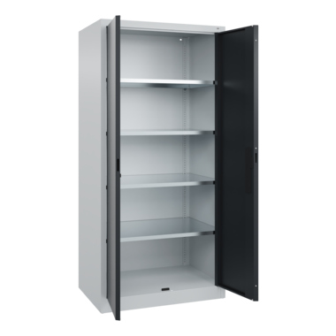 Werkzeugschrank Acurado, Korpus aus stabiler Stahlkonstruktion mit hochwertiger Einbrennbeschichtung für hohe UV-Beständigkeit. Mit Bodengleitern als praktischem Schrank- und Fußbodenschutz. Hohe Flexibilität der Inneneinrichtung durch Höhenverstellbarkeit im Raster. Türen mit geschlossenen Seitenprofilen und verdeckten Schließstangen für höchste Stabilität und Einbruchsicherheit, mit Softanschlag. Türaufhängung oben und unten in Drehbolzen. Türen zueinander schlagend für gemeinsamen Verschluss. 3-Riegeliges Ergo-Lock Griffschloss für optimale Bedienungssicherheit und Verschleißfestigkeit, mit patentiertem Mechanismus: Zum Schließen einfach zudrücken. Achtung: Anlieferungsmöglichkeit durch Sattelschlepper muss gegeben sein.