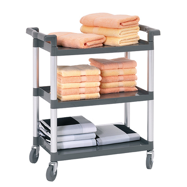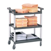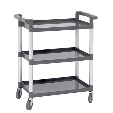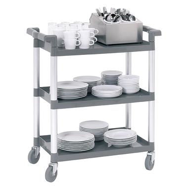 Schnell und sauber aufräumen mit dem praktischen Abräumwagen. Besonders geeignet für Gastronomie, Kantinen, Hotels und Krankenhäusern. Die glatten Borde mit umlaufender Aufkantung verhindern das Abrutschen von Geschirr und erleichtern die Reinigung - ideal für den hygienischen Einsatz in Großküchen und Spülbereichen. Der Servierwagen wird als Bausatz geliefert und lässt sich werkzeugarm montieren - das spart Zeit bei der Inbetriebnahme in hektischen Küchenumgebungen.