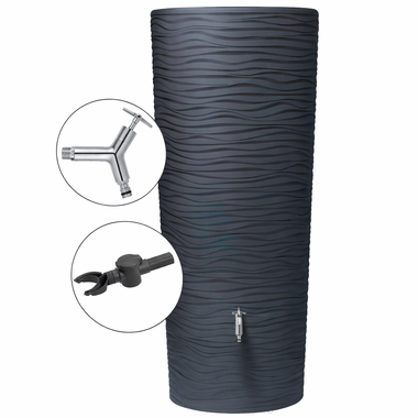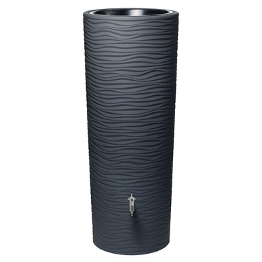 Natur pur! Der Behälter mit wellenförmiger Oberflächenstruktur präsentiert sich je nach Lichteinfall in immer neuen Facetten. So setzt der Natura 2in1 Regenspeicher lebendige Akzente auf Ihrer Terrasse. 2 Funktionen: Regenwassernutzung und Deko. Die integrierte Pflanzschale mit Komfort-Entnahme und einer Tiefe von 20 cm ermöglicht eine individuelle Gestaltung. Mit zwei hochwertigen, integrierten Messinggewinden.
