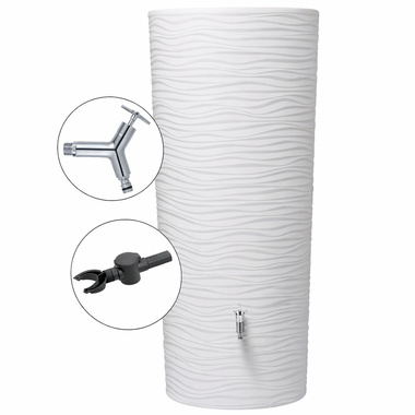 Maße: 62 x 150 x 62 cm (B x H x T) Fassungsvermögen: 350 l inkl. SPEEDY Regensammler DN 70-100, Chrom-Hahn, Pflanzschale, Komfort-Entnahmeset für Pflanzschale 2in1, Filtermatte, Teflonband, Zulaufdichtung DN 19/32 Material: Polyethylen