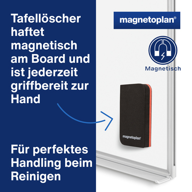 - 1 Tafellöscher (magnethaftend) blau, 1 Whiteboardmarker rot, 1 Whiteboardmarker schwarz, 4 Magnete discofix standard grau Ø 30 mm