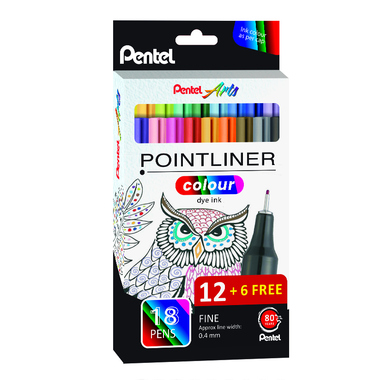 Pentel Fineliner Pointliner Colour Dye Ink 18 St./Pack.
