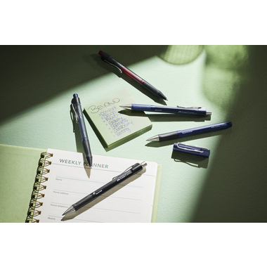 Strichstärke 0,5 mm Kugeldurchmesser 1 mm Produkttypbezeichnung Beyond Ball Schaftfarbe blau, rot, schwarz Schreibfarbe blau, rot, schwarz Ausführung der Farbe blau, rot, schwarz dokumentenecht dokumentenecht Mechanik Druckmechanik Typbezeichnung der Mine G2 Griffzone gummiert Produktkategorie Kugelschreiber Werbliche Produkttypbezeichnung Kugelschreiber Beyond Ball Material des Schaftes Kunststoff, 66 % recycelt geeignet für Händigkeit Links- und Rechtshänder Material des Clips Metall Mine auswechselbar Mine auswechselbar Clip vorhanden mit Clip schnelltrocknend schnelltrocknend